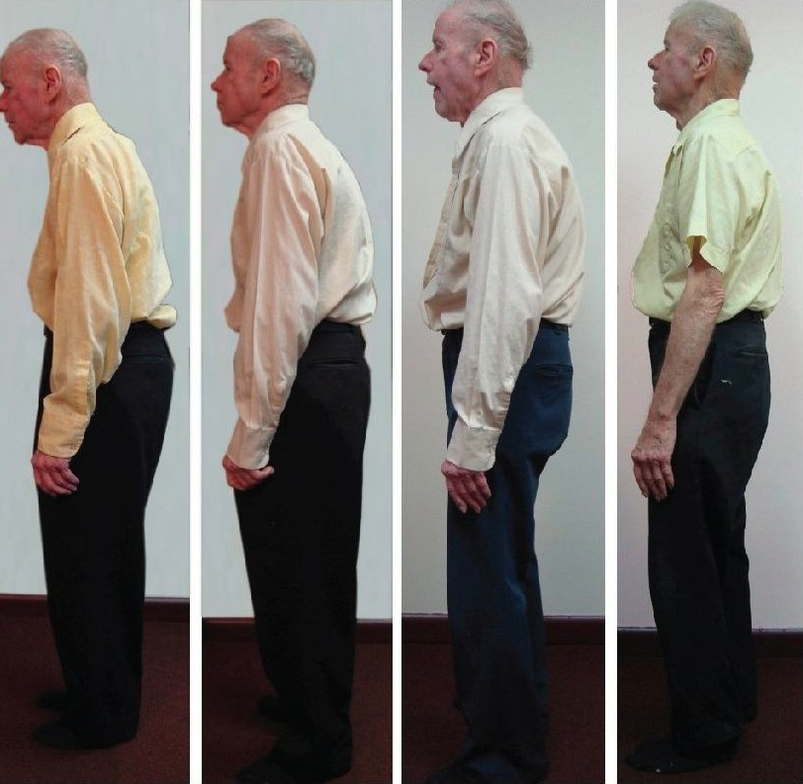 By the way, the picture at the top of this blog is of our patient George. When he first presented, he had all three of the signs we talked about in this article. You can see how forward hunched his posture was when he started care. The final picture on the right is after approximately eight months of care. A remarkable transformation in his health!